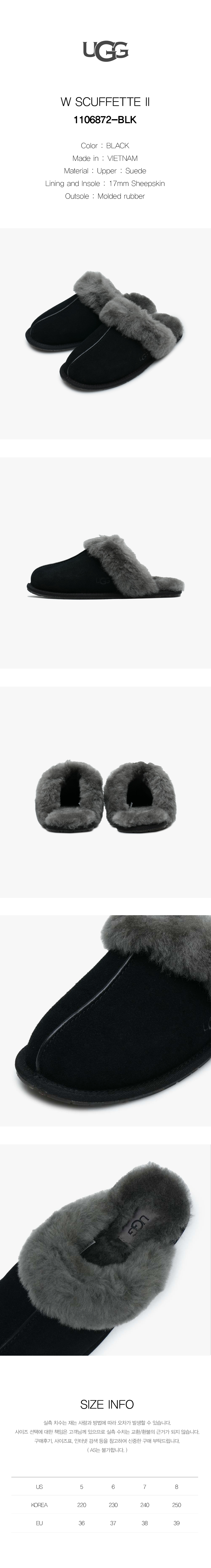 | 제품 소재 | Upper : Suede Lining and Insole : 17mm Sheepskin Outsole : Molded rubber |