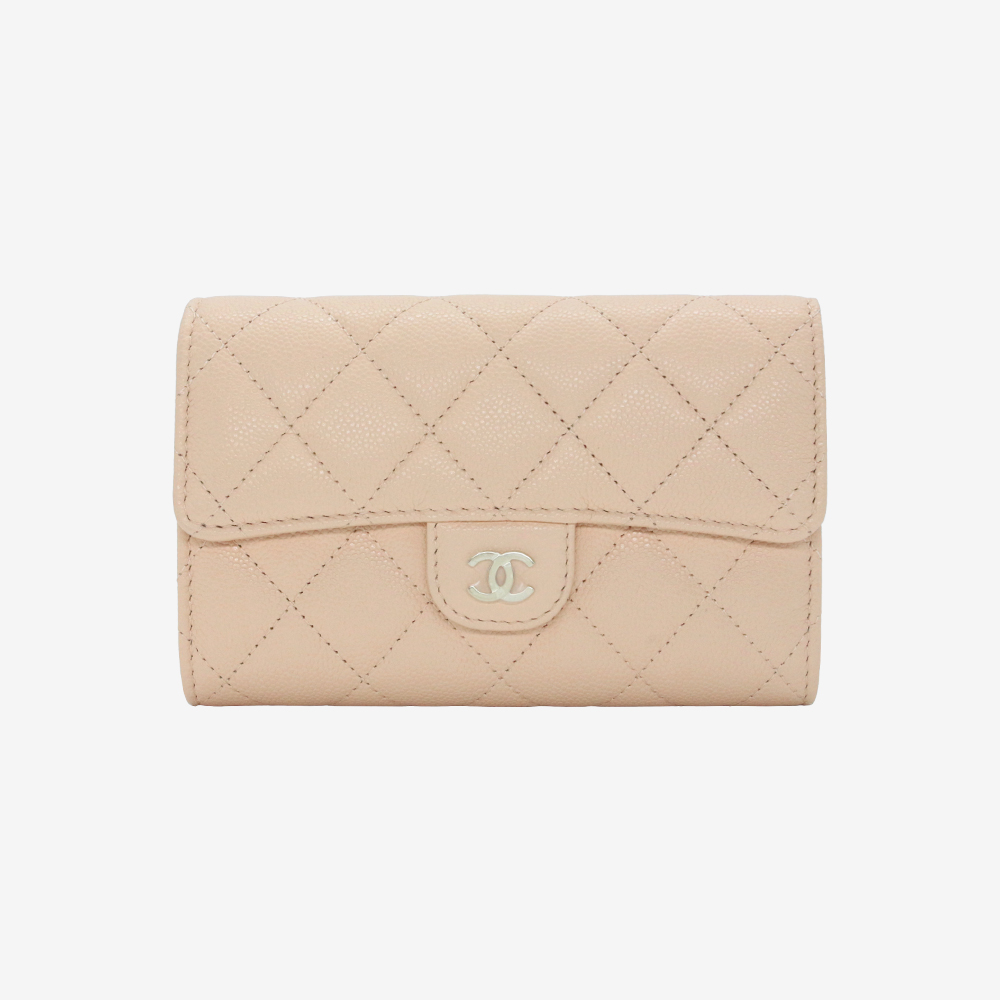 샤넬 스몰 플랩 지갑 그레인드 카프스킨 & 실버 메탈 블랙 AP3974