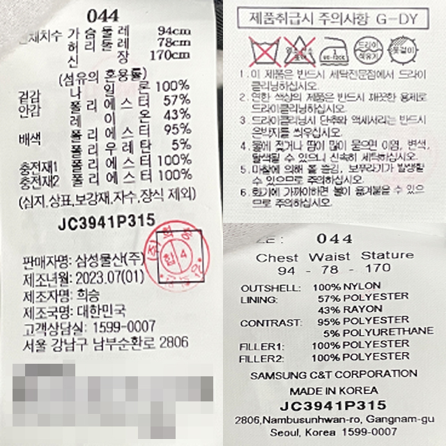 | 세탁방법 및 취급시 주의사항 | 상세 설명 참조 |