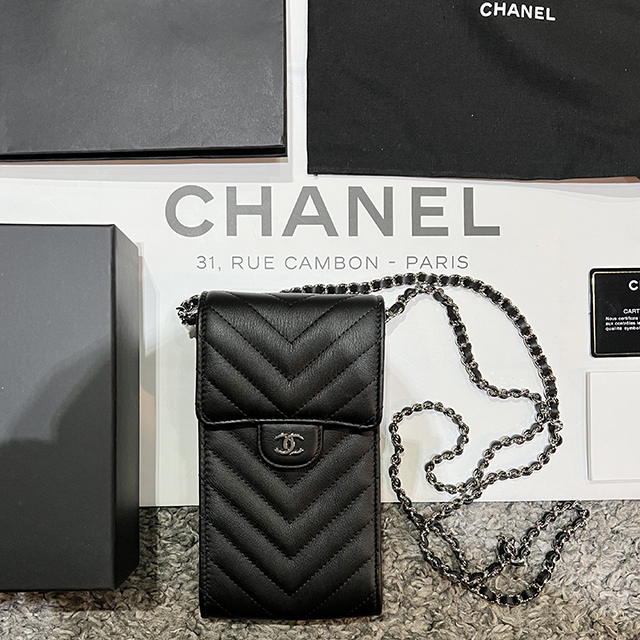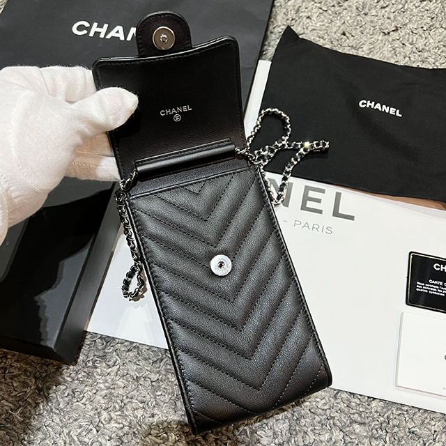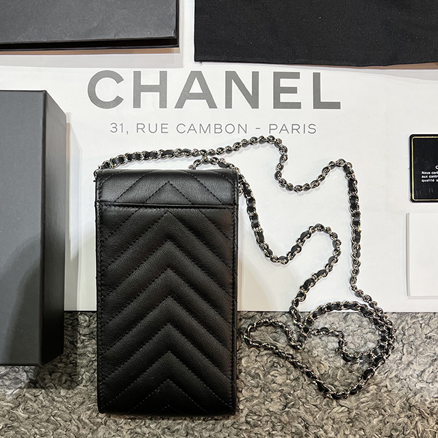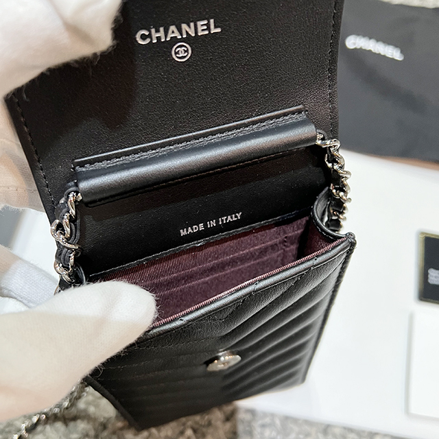 샤넬 클래식 미니 파우치 캐비어 블랙 은장 여성 A82365 B01480 C3906