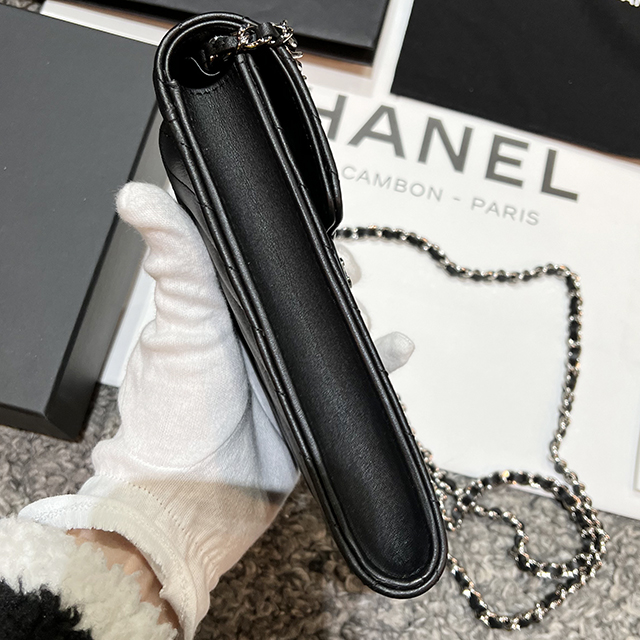 샤넬 스몰 플랩 지갑 그레인드 카프스킨 & 실버 메탈 블랙 AP3974