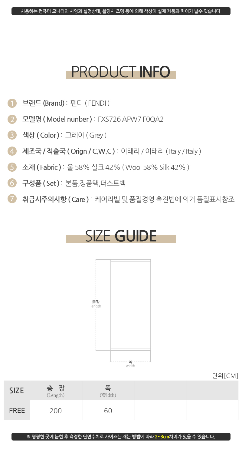 | 제조자(수입자) | 펜디/디몬트컴퍼니병행수입 |