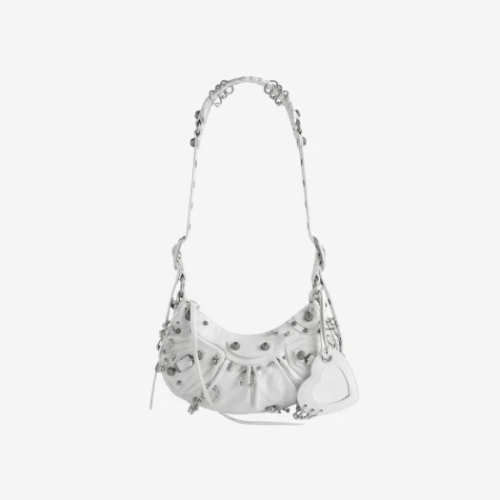 어레나 램스킨 소재 면 캔버스 안감 탈착 및 조절 가능한 숄더 스트랩 가죽 브레이드 숄더 패드 탈착 가능한 파우치, 거울 거울부분 톤온톤 Balenciaga 로고 엠보싱 지퍼 클로저