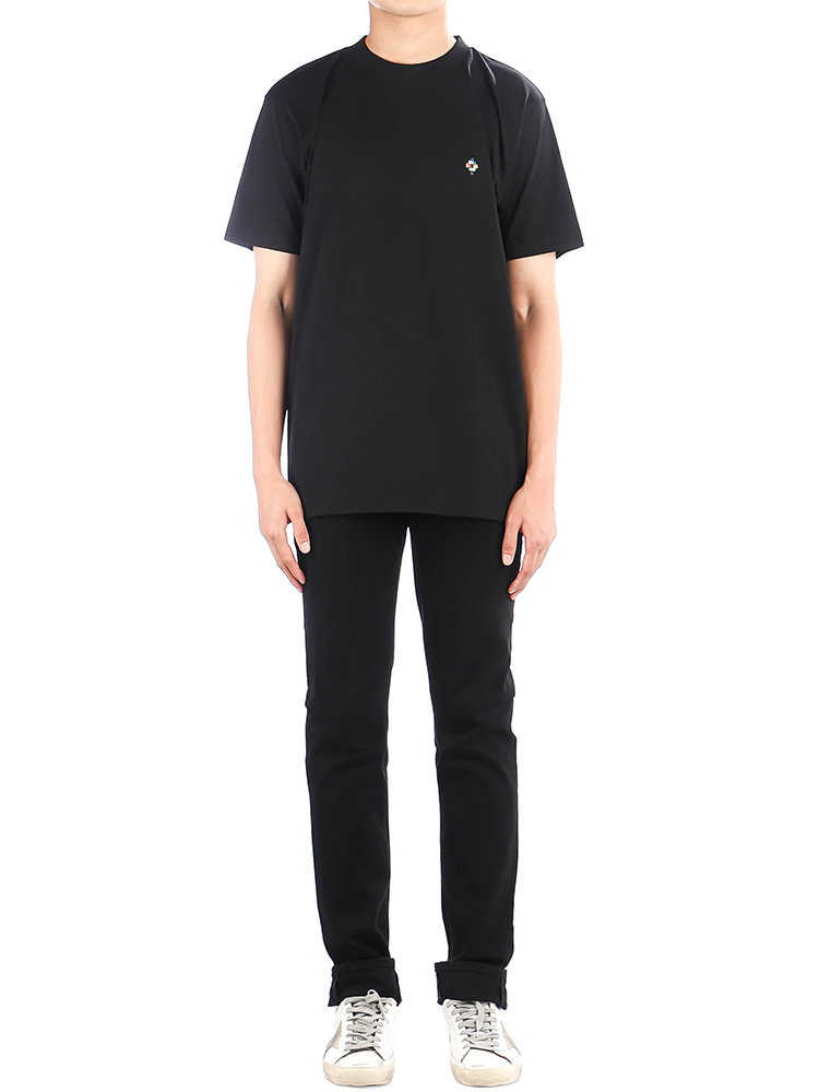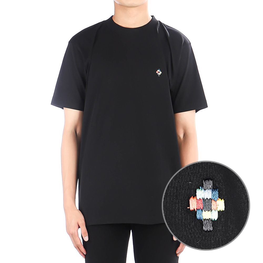 당일배송마르셀로불론 남성 글리치 윙 프린팅 라운드 블랙멀티컬러 반팔 CMAA018S190010231088