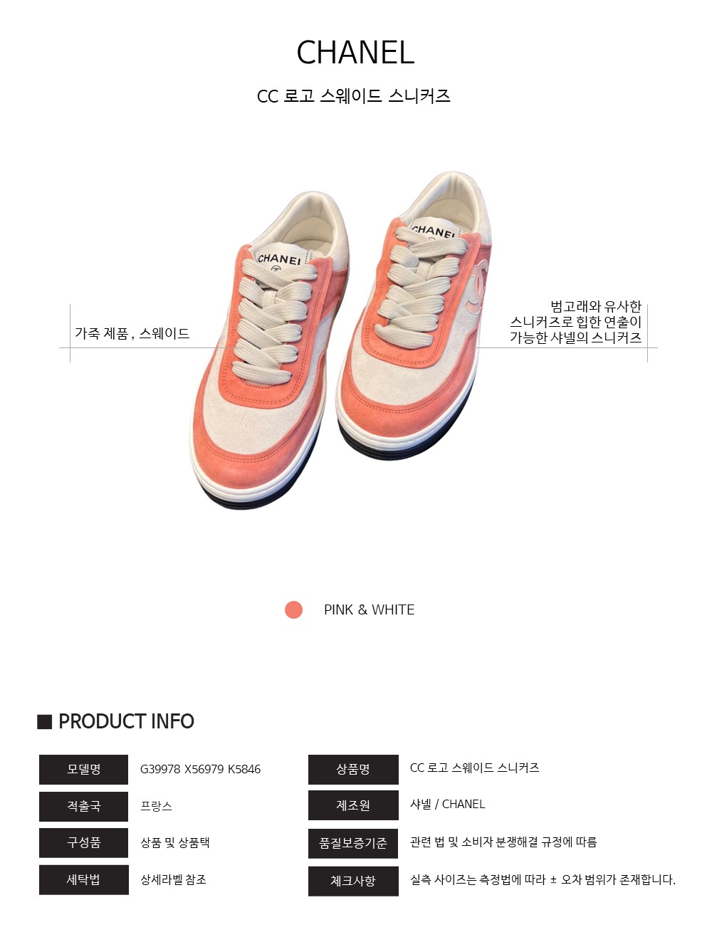 [킥샵/당일] 샤넬 CC로고 스웨이드 스니커즈 G39978 X56979 K5846