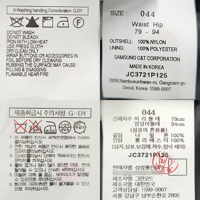 | 세탁방법 및 취급시 주의사항 | 상세 설명 참조 |