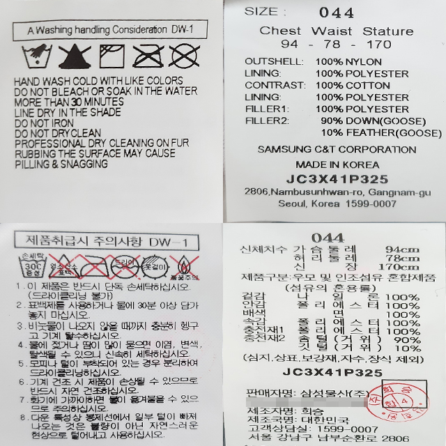 | 세탁방법 및 취급시 주의사항 | 상세 설명 참조 |