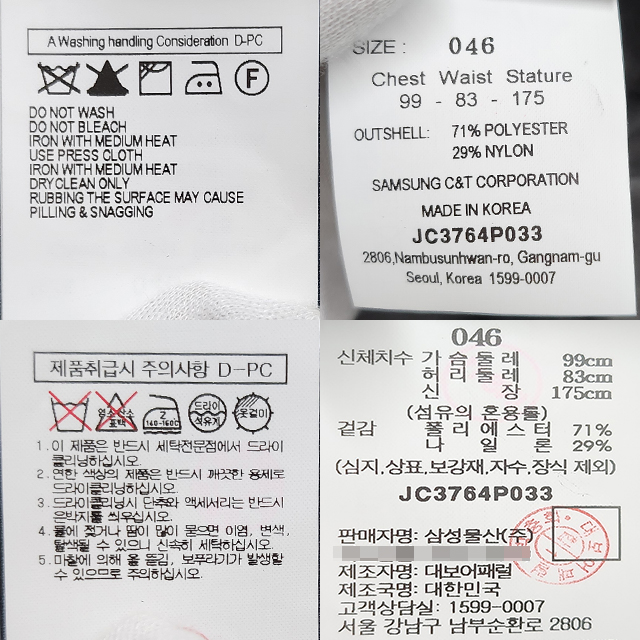 | 세탁방법 및 취급시 주의사항 | 상세 설명 참조 |