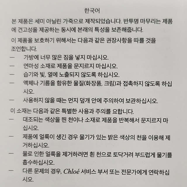 | 세탁방법 및 취급시 주의사항 | 상세 설명 참조 |