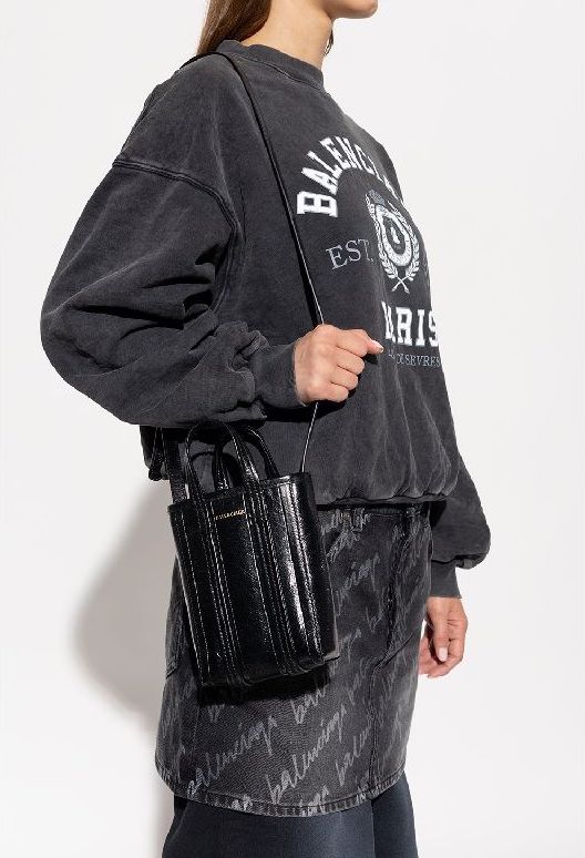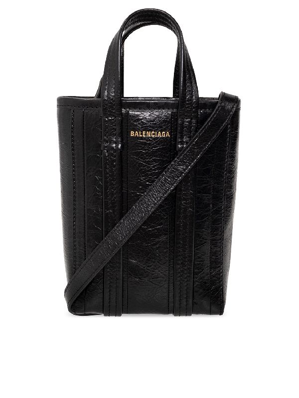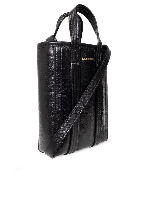 / 발렌시아가 BARBES 로고 텍스처드 레더 폰 홀더백