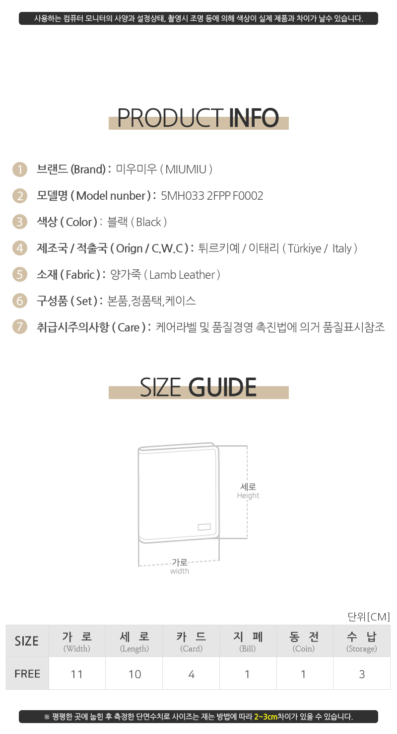 | 제조자(수입자) | 미우미우/디몬트컴퍼니병행수입 |