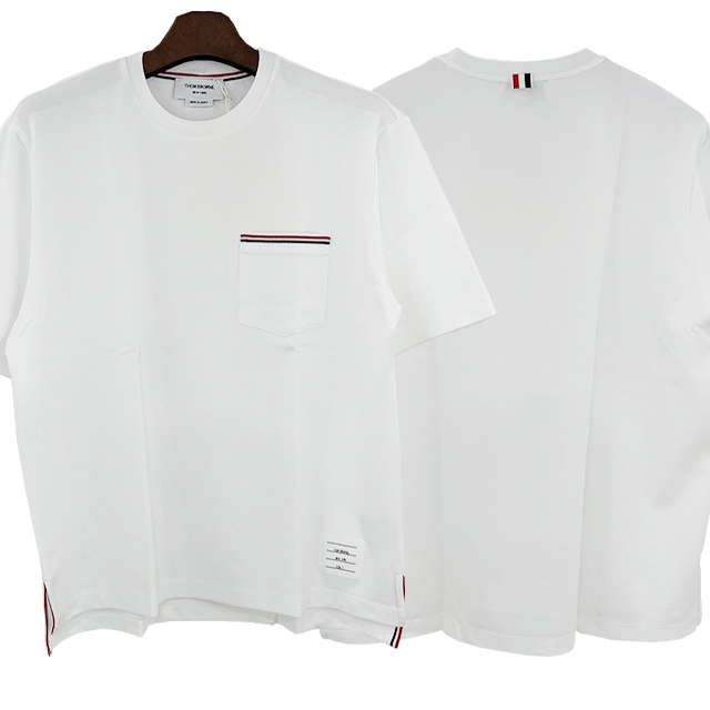 디몬트 23 S/S 톰브라운 남성 삼선라인 포켓 코튼 반팔(네이비) MJS010A 01454 415