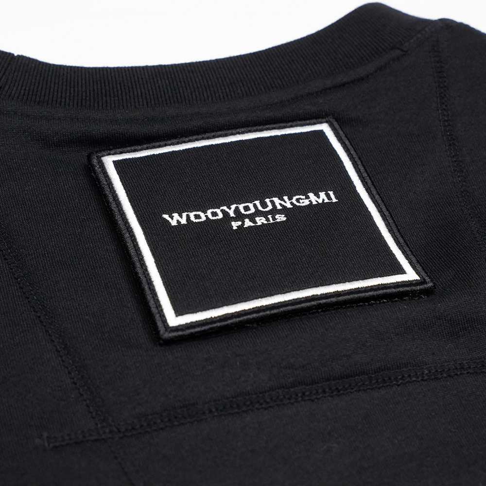 우영미 백 스퀘어 라벨 라운드 코튼 반팔티셔츠 아이보리 남성 W233TS01702I