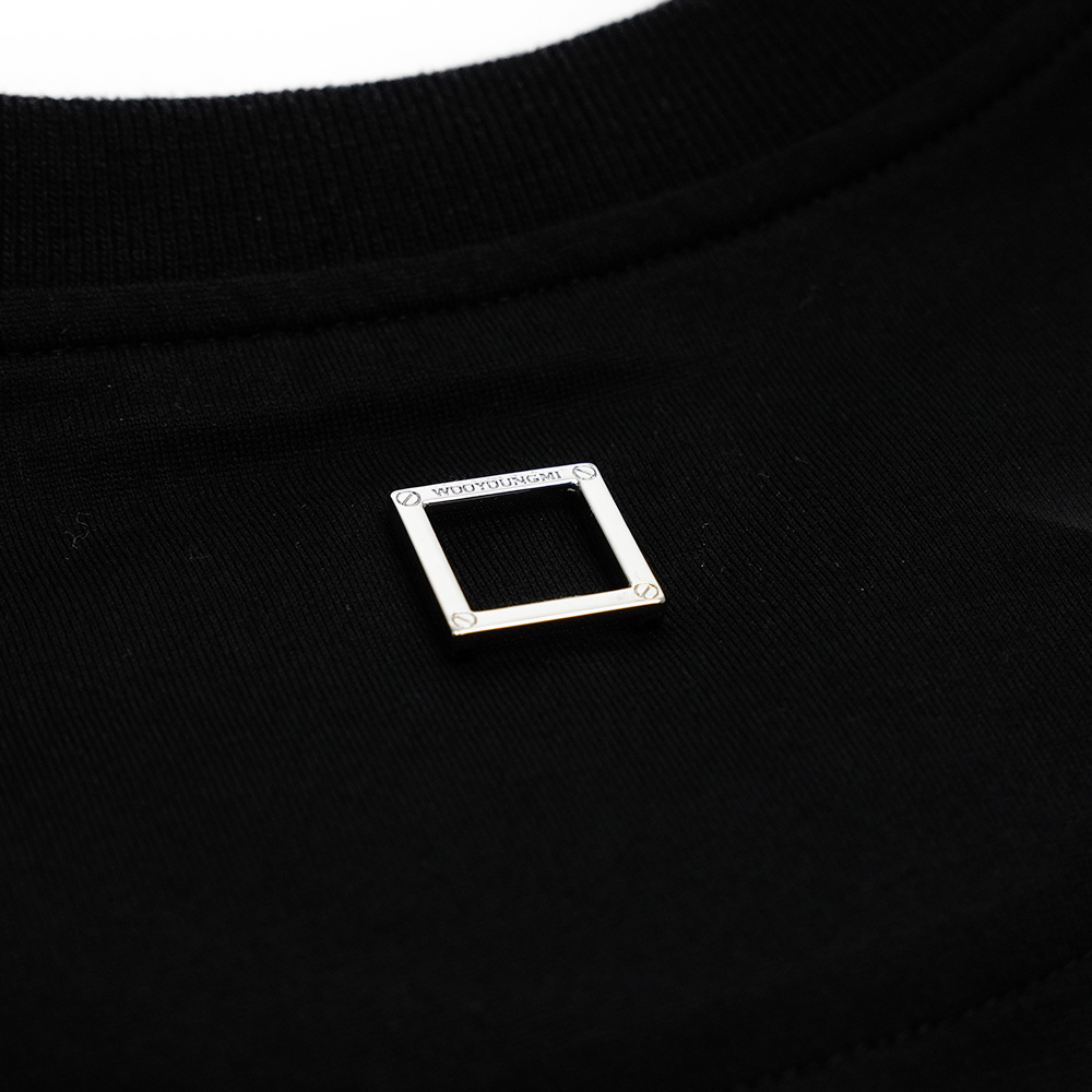 우영미 백 스퀘어 라벨 라운드 코튼 반팔티셔츠 아이보리 남성 W233TS01702I