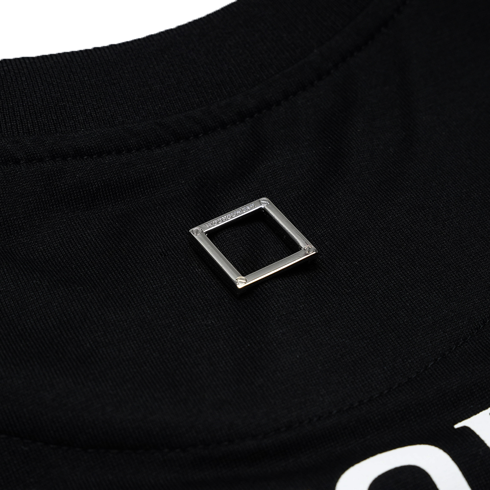 우영미 백 스퀘어 라벨 라운드 코튼 반팔티셔츠 아이보리 남성 W233TS01702I