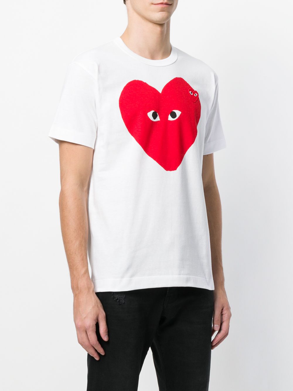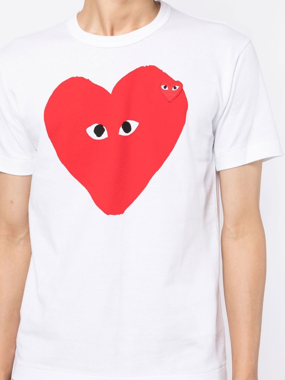 당일배송꼼데가르송 남성 레드와펜 피그쌍하트 반팔티셔츠 화이트 AZ-T220-051-1