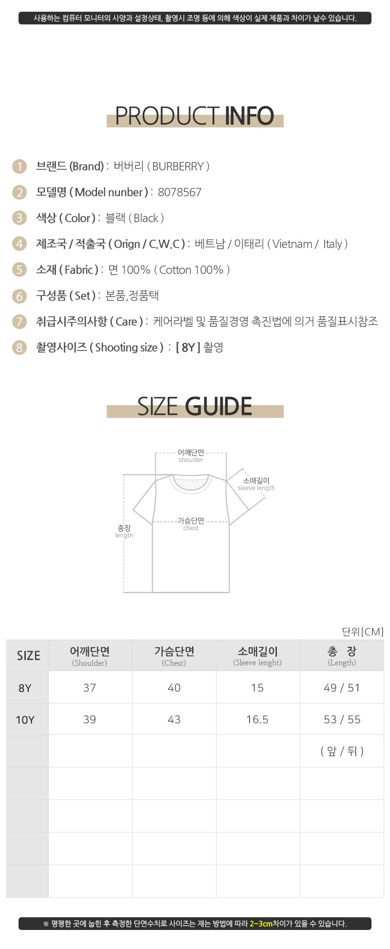 | 제조자(수입자) | 버버리/디몬트컴퍼니병행수입 |