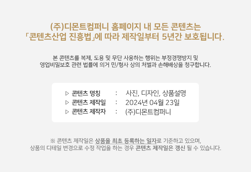 | 품질보증 기준 | 공정거래위원회 고시(소비자분쟁해결기준)에 의거하여 보상해 드립니다. |