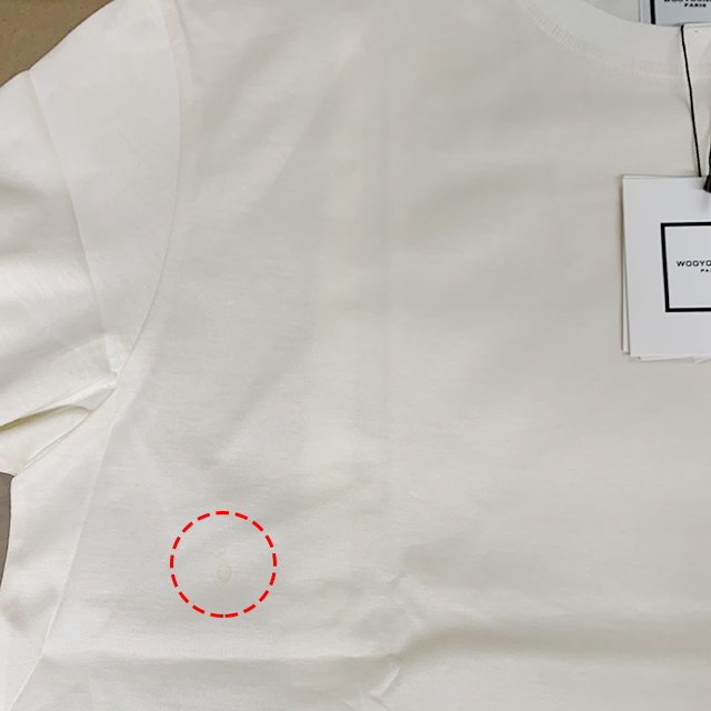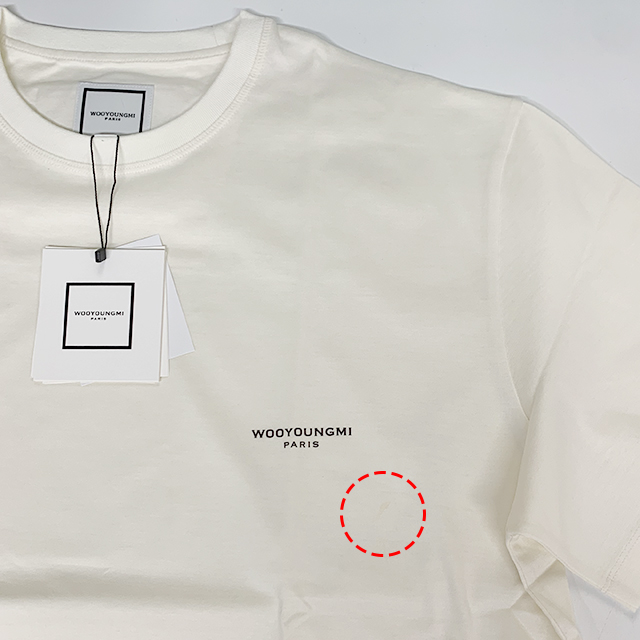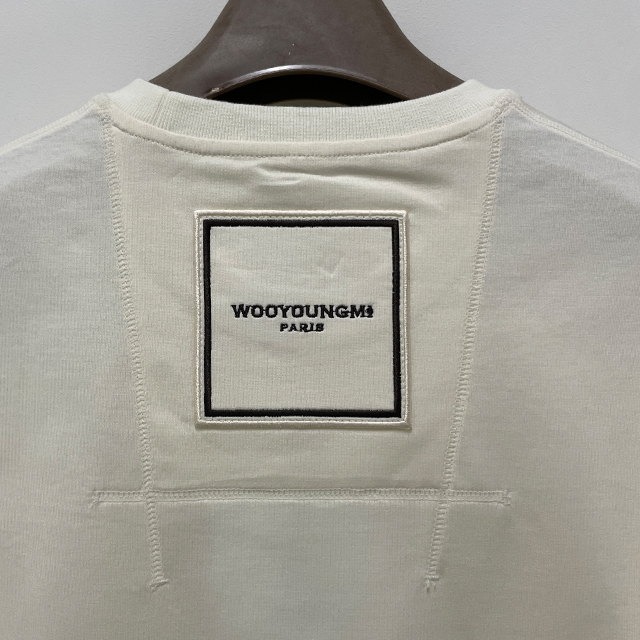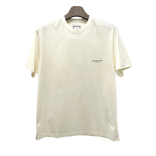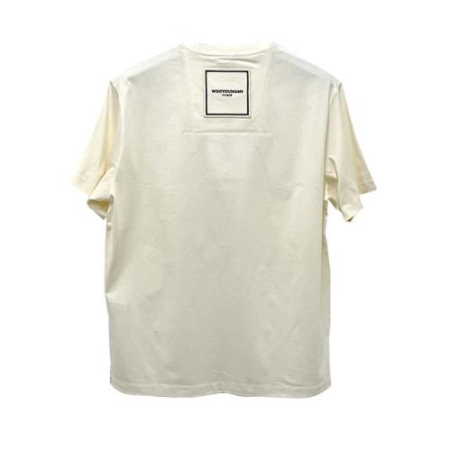 우영미 백 스퀘어 라벨 라운드 코튼 반팔티셔츠 아이보리 남성 W233TS01702I