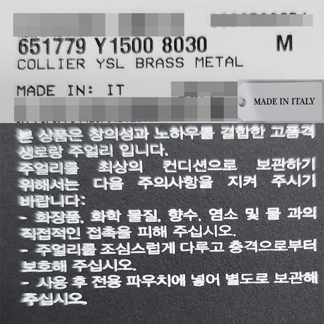 [논현 더팩토리](당일) 24SS 생로랑 YSL 카산드라 라인스톤 참 브레이슬릿 팔찌 (712345 Y1526 8162)