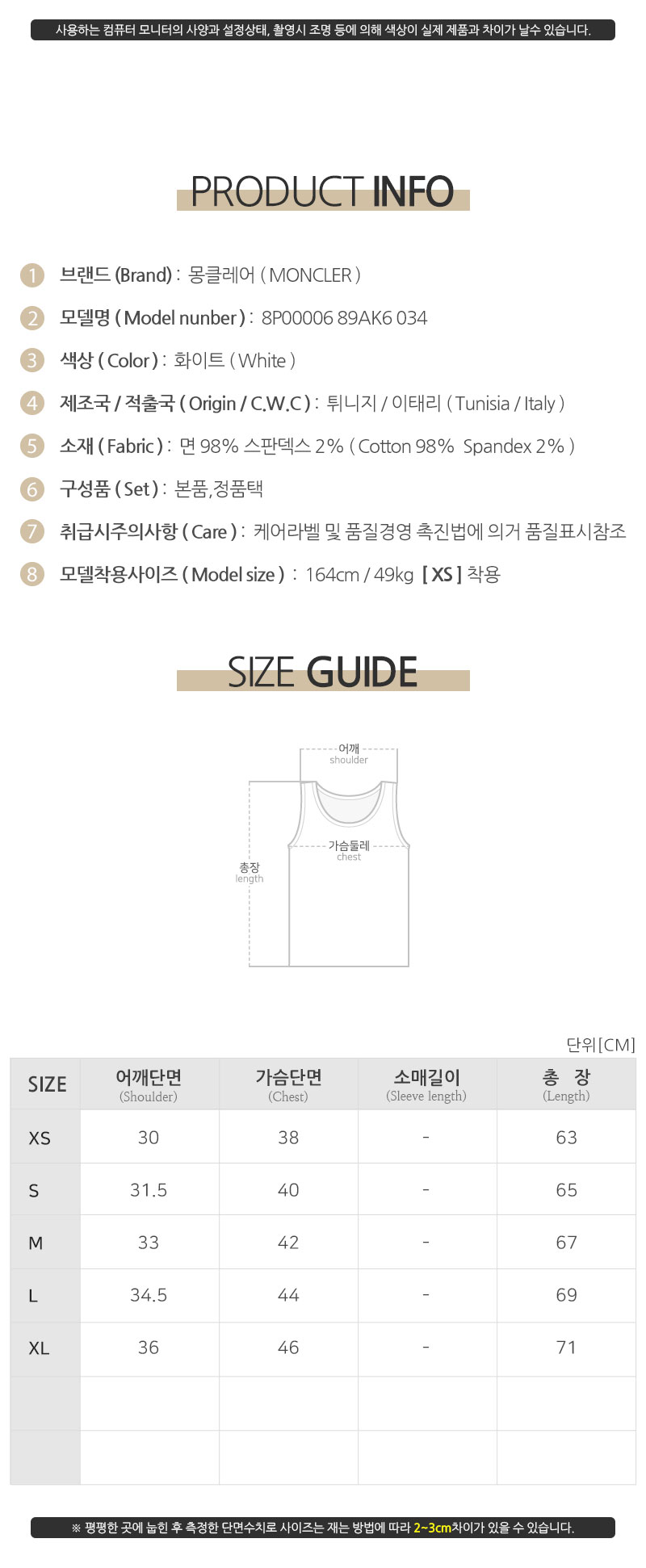 | 제조자(수입자) | 몽클레어/디몬트컴퍼니병행수입 |