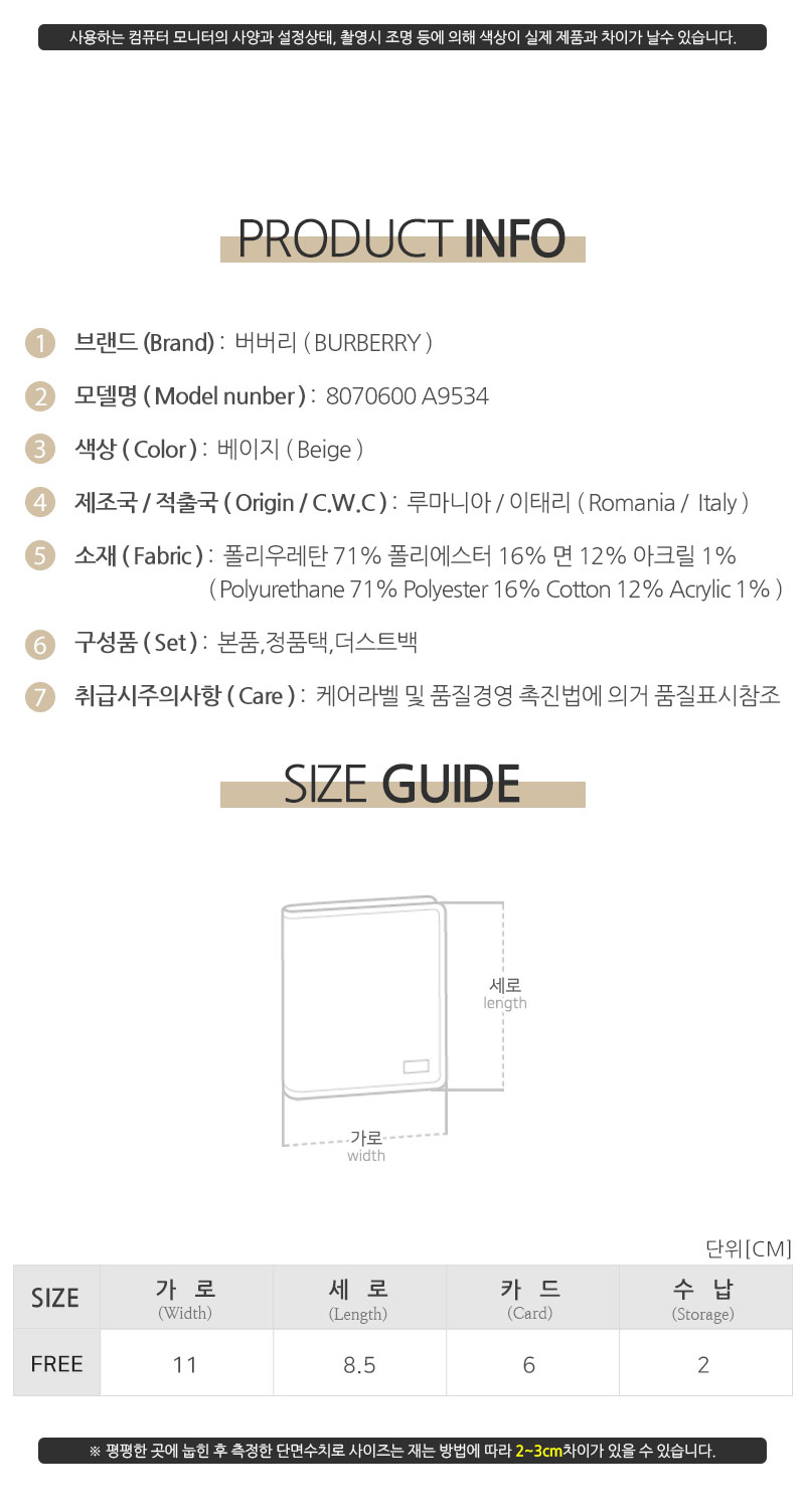 | 제조자(수입자) | 버버리/디몬트컴퍼니병행수입 |