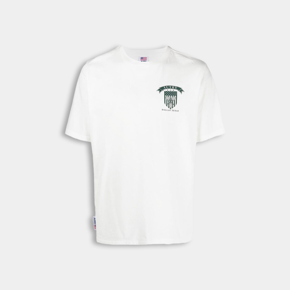 당일배송우영미 남성 레터링로고 백 레더패치 라운드넥 코튼 반팔티셔츠 브라운 W233TS02706D