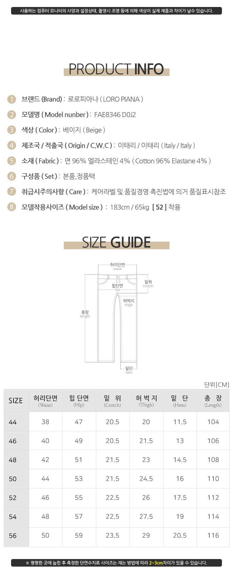 | 제조자(수입자) | 로로피아나/디몬트컴퍼니병행수입 |
