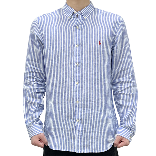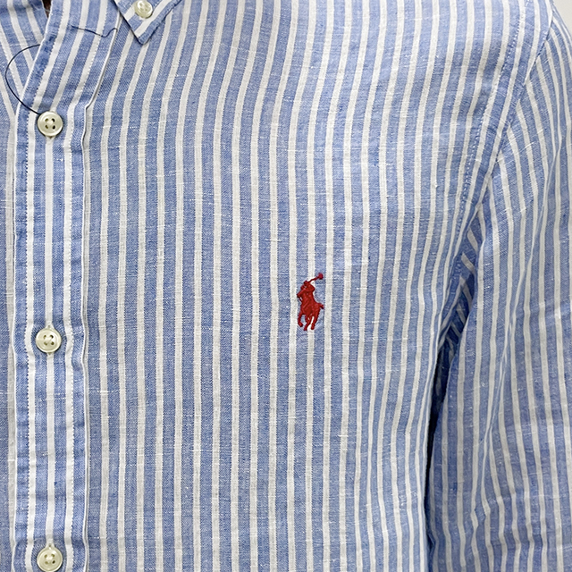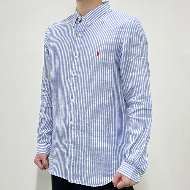 [논현 더팩토리](당일) 24SS 폴로 랄프 로렌 포니 로고 스트라이프 린넨 셔츠 (710837274 004)