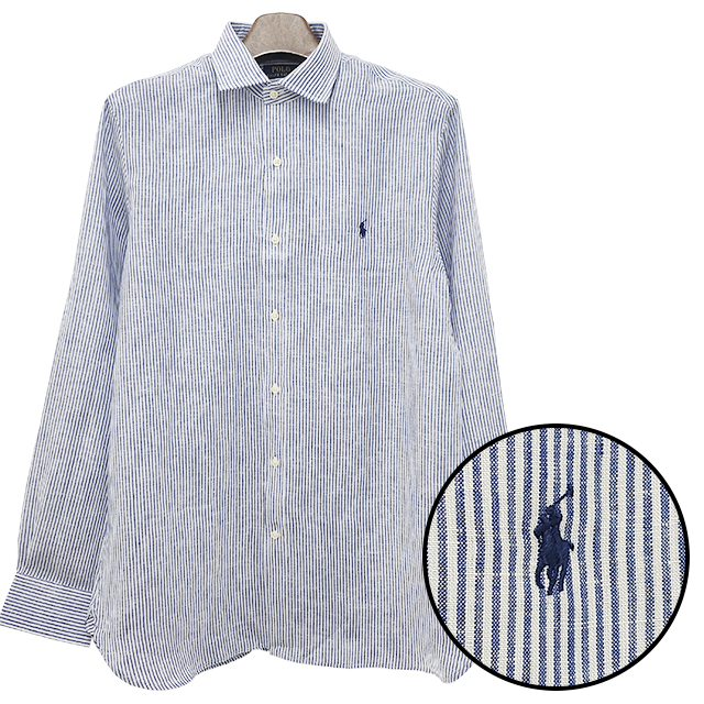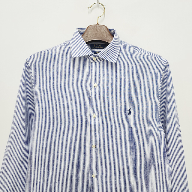 [논현 더팩토리](당일) 24SS 폴로 랄프 로렌 포니 로고 스트라이프 린넨 셔츠 (710837274 004)