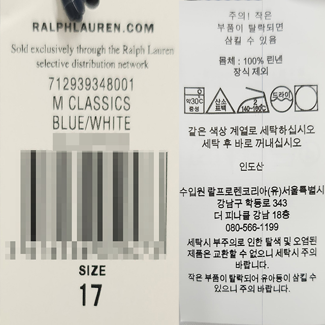| 세탁방법 및 취급시 주의사항 | 상세 설명 참조 |