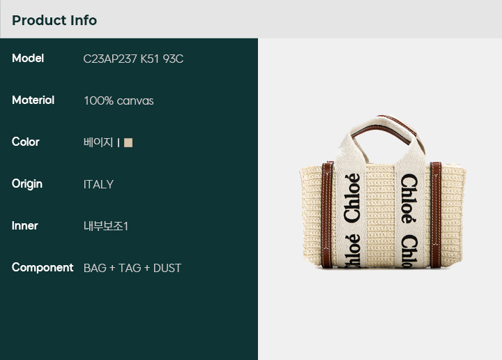 [논현 더팩토리](당일) 24SS 끌로에 WOODY 우디 스몰 바스켓백 (CHC22SS381G55 101)