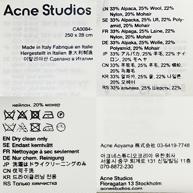 디몬트 23 F/W 아크네 스튜디오 공용 핑크라벨 슬림 울 머플러(파우더블루) CA0281 AQO