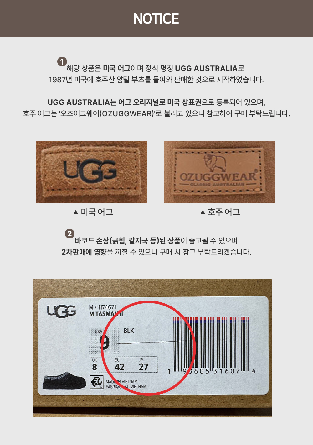| 제조자(수입자) | 어그(병행수입:TREXI) |