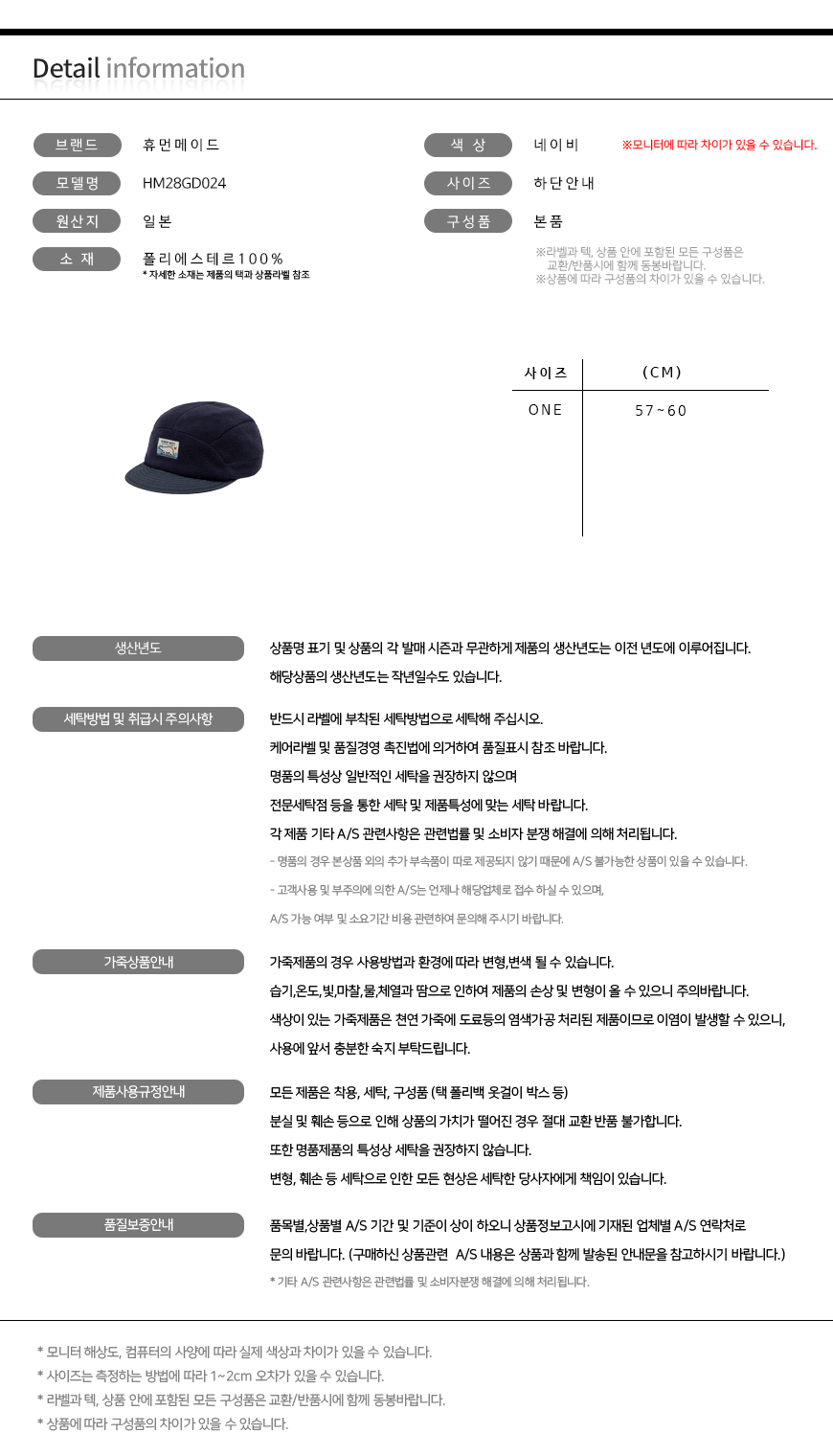 | 세탁방법 및 취급시 주의사항 | 제품의 수명을 연장시키기 위하여 제품에 부착되어 있는 제품 특성 및 세탁 방법을 반드시 확인하여 주시기 바랍니다. |