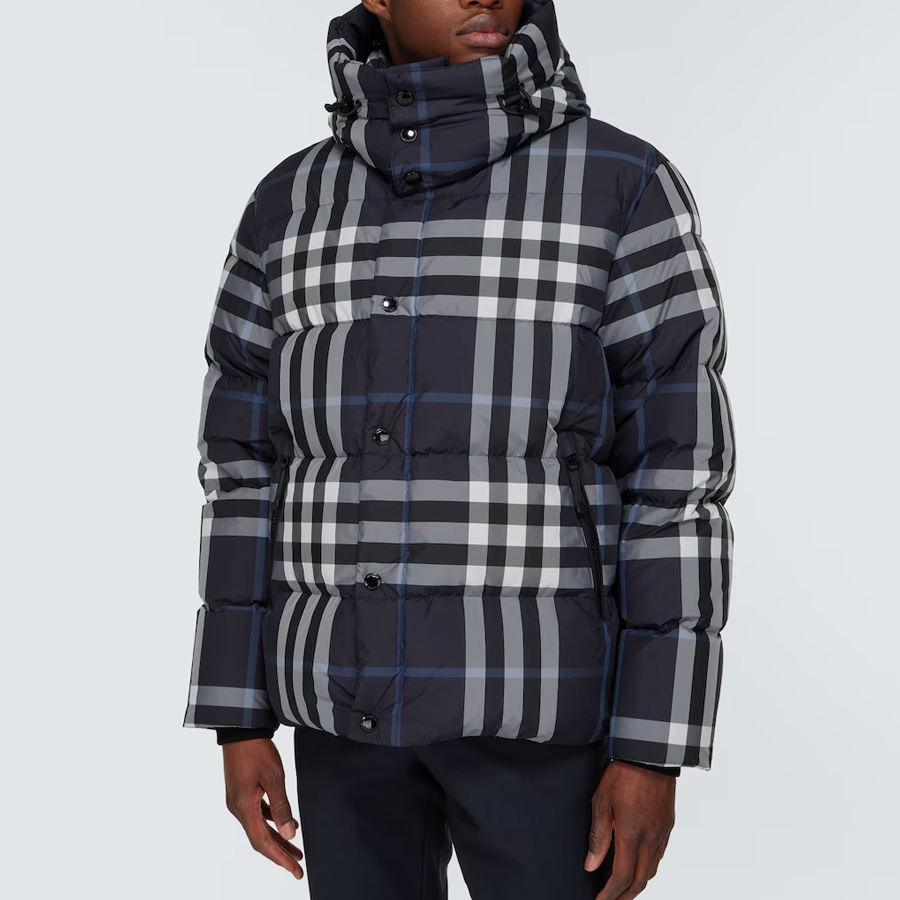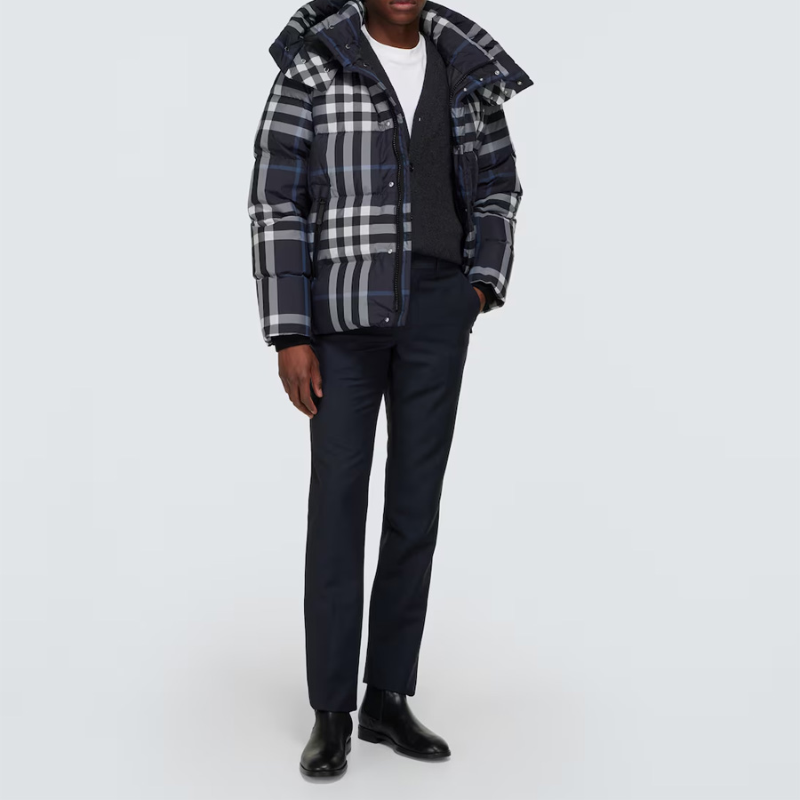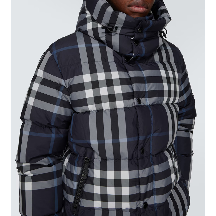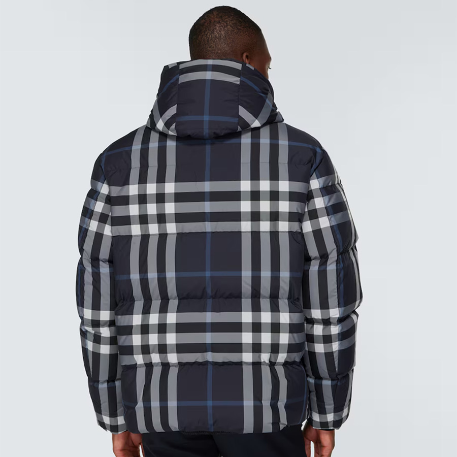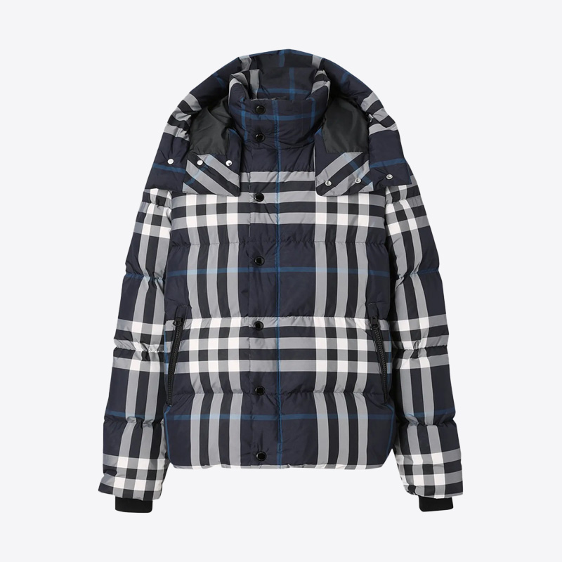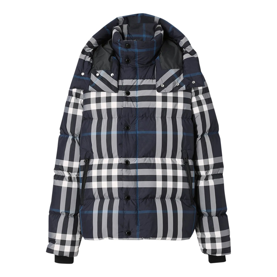 남성 디테처블 슬리브 후드 나이트 체크 패딩 자켓 (네이비)
