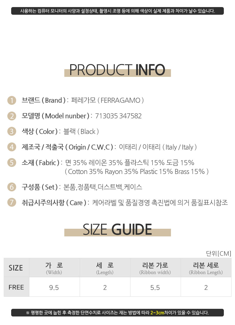 | 제조자(수입자) | 페레가모/병행수입디몬트컴퍼니 |
