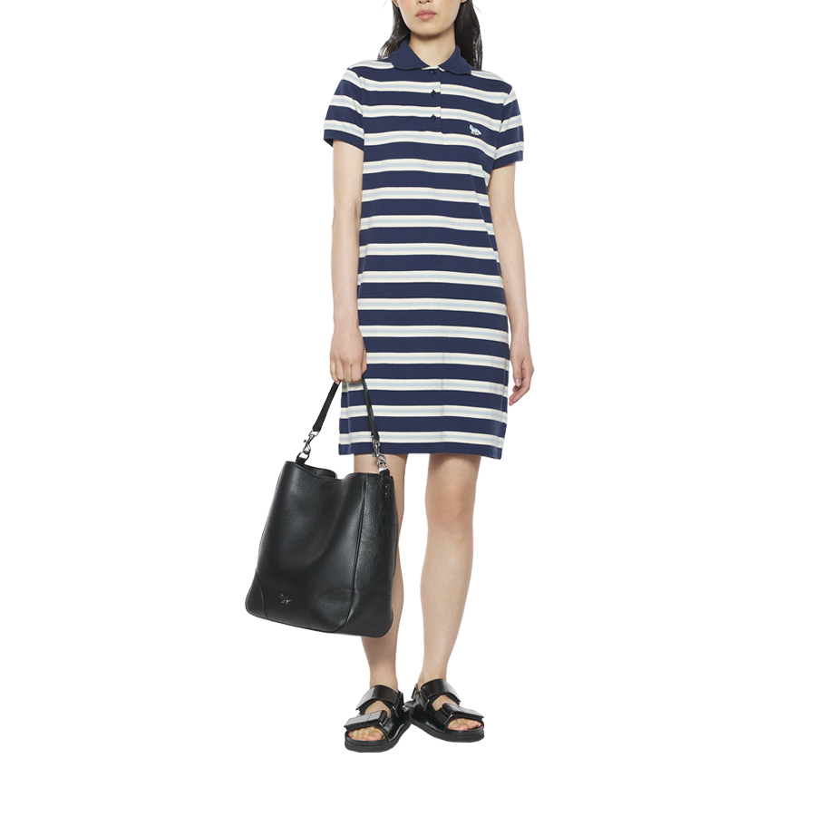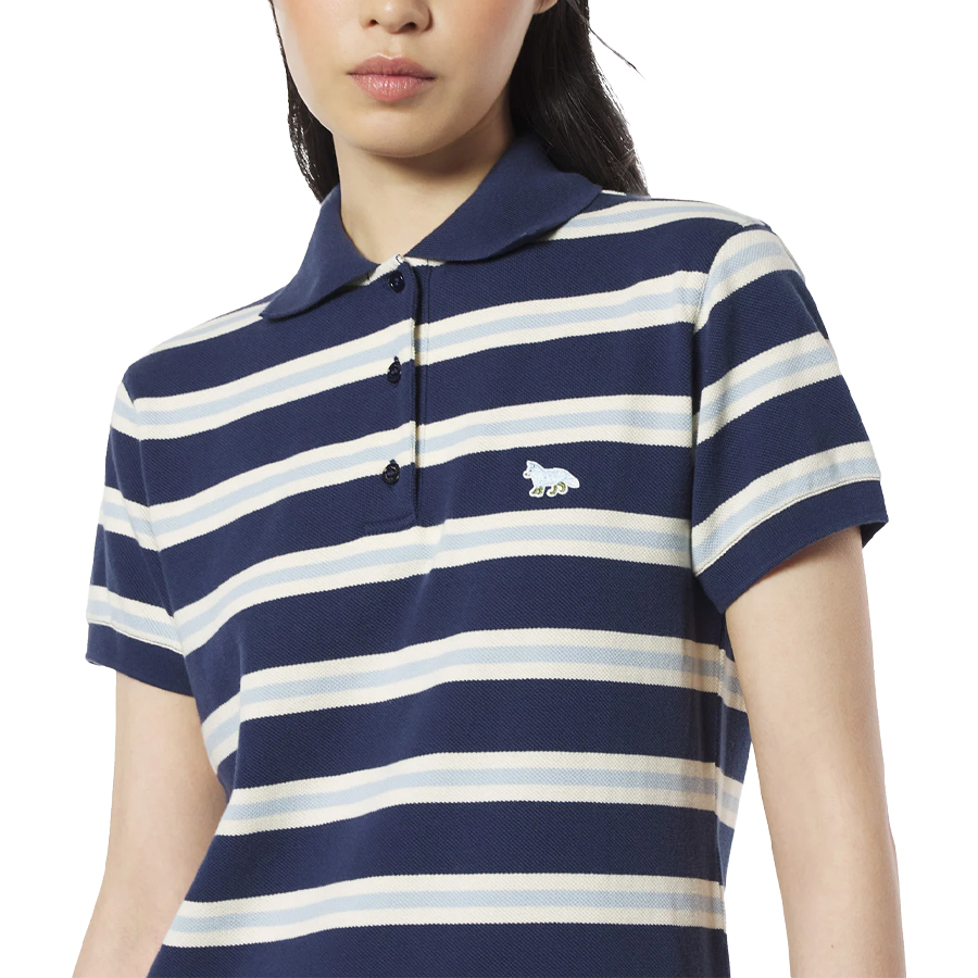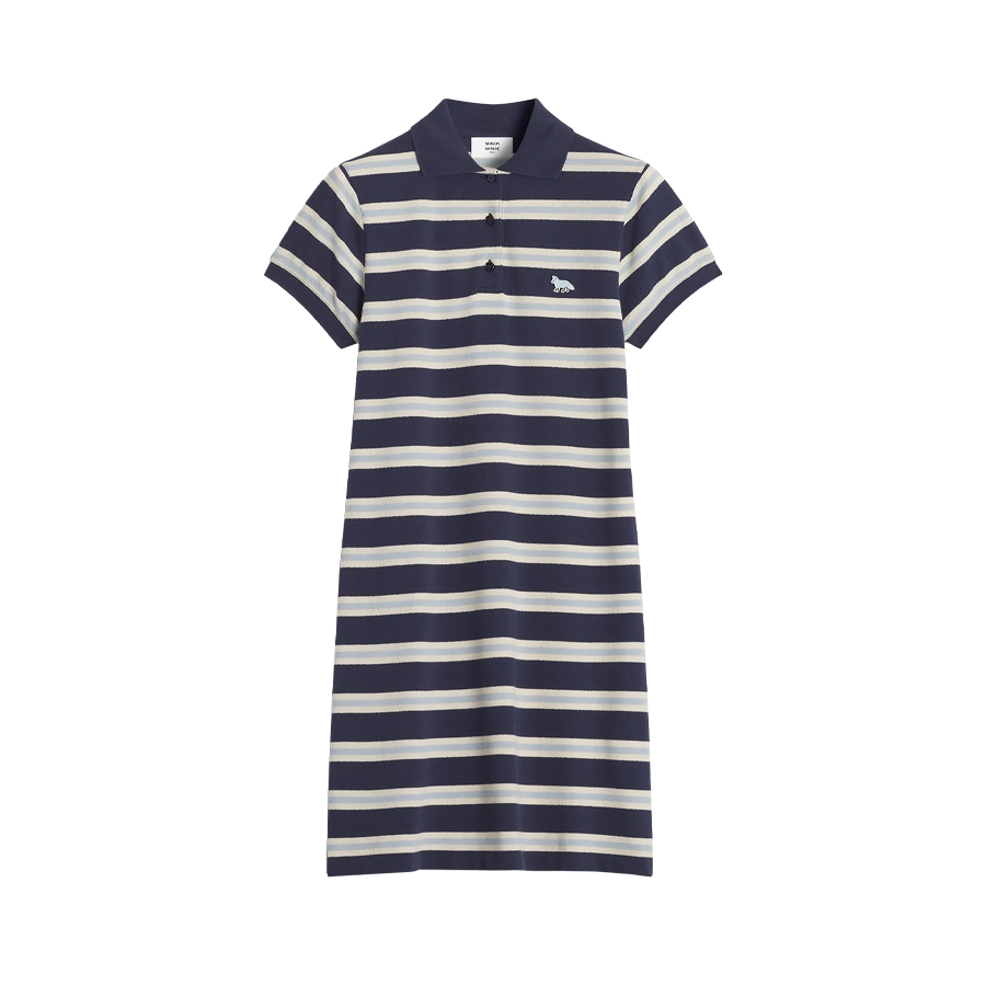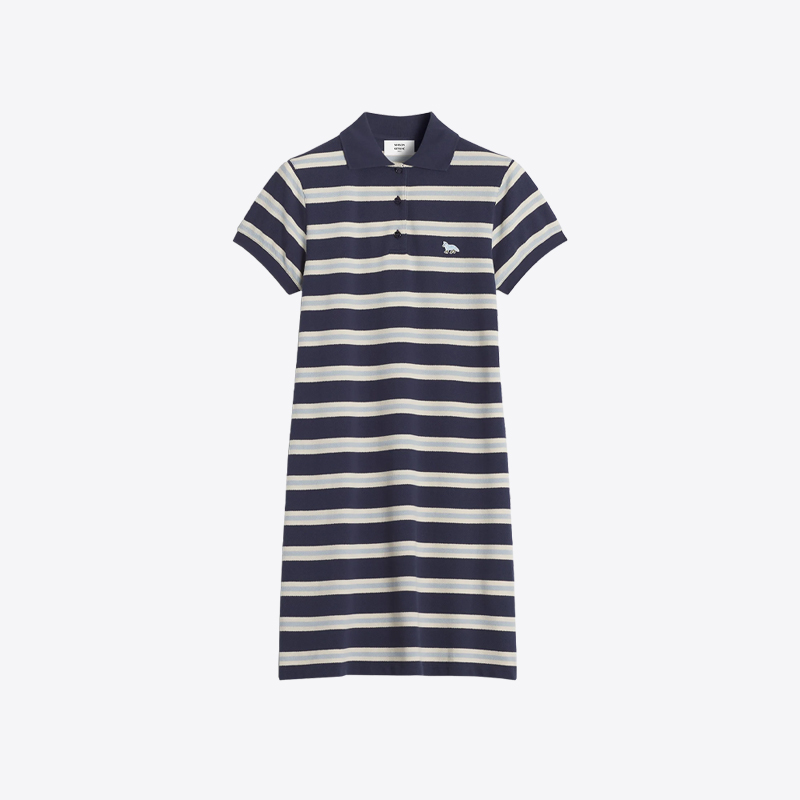 여성 베이비폭스 패치 스트라이프 폴로 피케 원피스 (네이비)