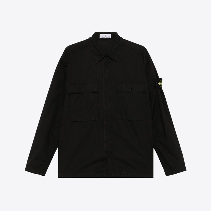 남성 체스트 포켓 코튼 오버 셔츠 (블랙)