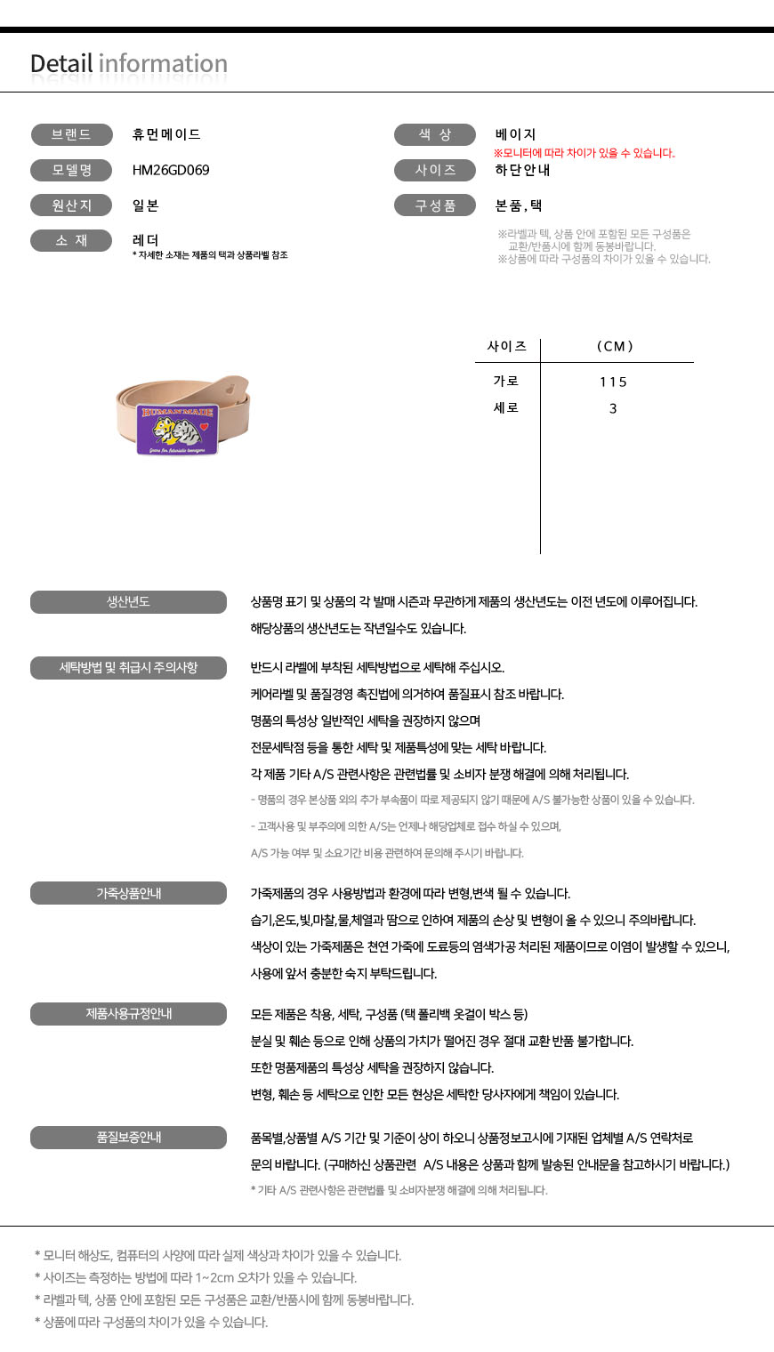 | 세탁방법 및 취급시 주의사항 | 제품의 수명을 연장시키기 위하여 제품에 부착되어 있는 제품 특성 및 세탁 방법을 반드시 확인하여 주시기 바랍니다. |